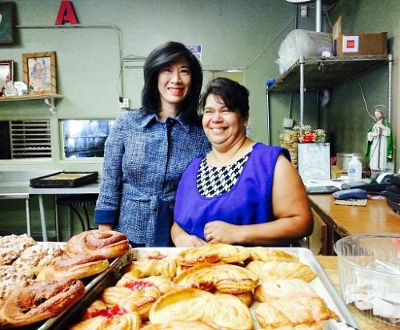 Presiden dan Chief Executive Officer Grameen America, Andrea Jung (kiri) bersama dengan pengusaha mikro wanita di Los Angeles. Foto: bizjournal
