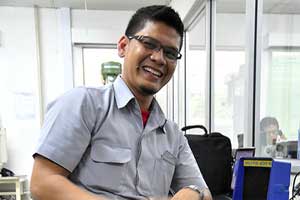Di dalam ruangan Departemen Manufacturing Engineering luas sekitar 25 m2, laki-laki itu bekerja bersama dua orang lainnya. Dia, Rajani Siregar (25 tahun), bekerja pada seksi New Line.