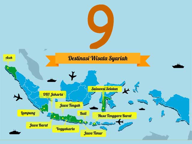 Mari menyebutkan sembilan destinasi wisata syariah tersebut, dinilai dari hasil kajian berdasarkan kesiapan sumber daya manusia (SDM), budaya masyarakat setempat, serta fasilitas wisata yang tersedia, seperti hotel, restoran, objek wisata dan daya tarik wisata lainnya. Apa saja: