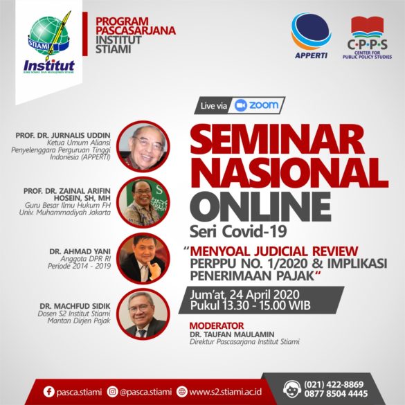 Seminar online PASCASARJANA STIAMI , APPERTI dan CPPS via Zoom, Serial Covid-19 dengan topik: Menyoal Judicial Review PERPPU 1/2020 tentang...