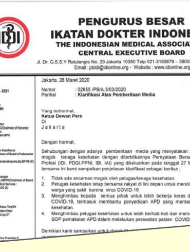Ikatan Dokter Indonesia (IDI) mengklarifikasi bahwa pernyataan bersama sebelumnya bukanlah ancaman. Klarifikasi itu disampaikan kepada Ketua Dewan Pers melalui surat...