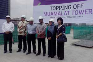 Bank Muamalat melakukan topping off Muamalat Tower, Rabu (18/6). Gedung tersebut diperkirakan akan selesai paling lambat bulan Desember 2014.