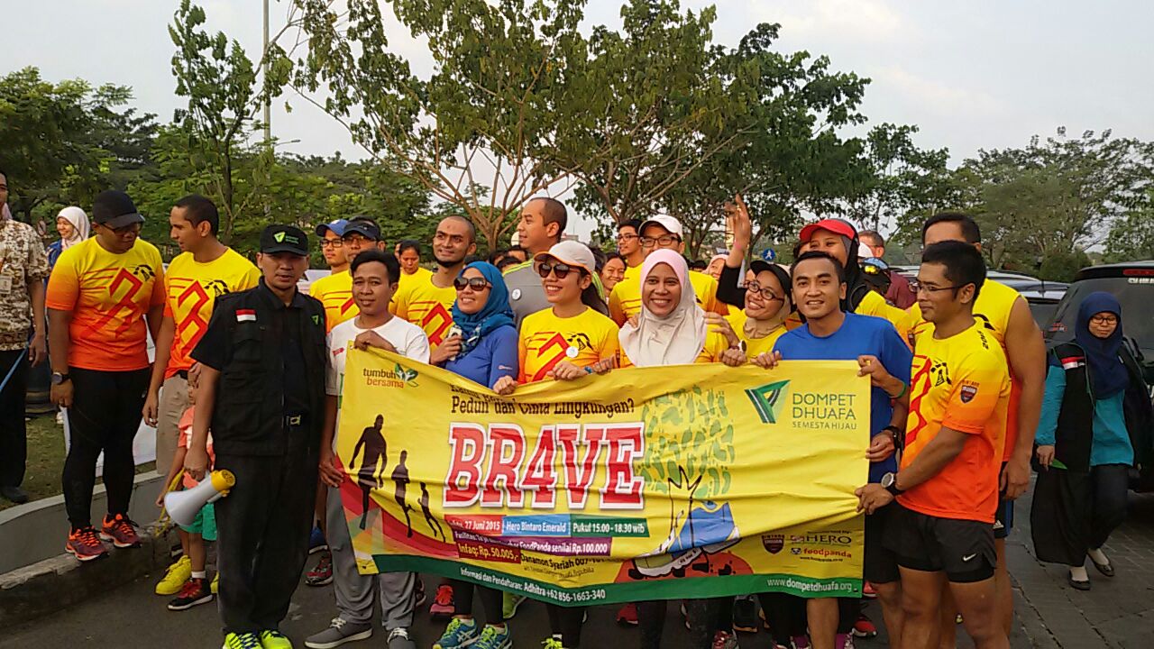 1 APada Sabtu sore (27/6), Dompet Dhuafa bersama dengan komunitas lari Bintaro Trojan Runners dan Hero mengadakan Bintaro Runs 4 Lovely Environment (BR4VE) di bilangan Bintaro Emerald, Tangerang Selatan. “Gelaran ini mengajak masyarakat untuk berlari sekaligus beramal. Karena dengan mengikuti event ini mereka akan berdonasi untuk program pengadaan air Dompet Dhuafa di Nusa Tenggara Timur yang minim air bersih,” kata Direktur Eksekutif Dompet Dhuafa, Yuli Pujihardi dalam siaran pers yang diterima mysharing, akhir pekan lalu.