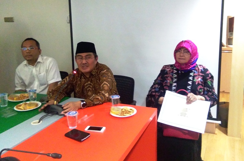 Ketua Umum ICMI - Jimly Asshiddiqie (tengah) dalam Komferensi Pers ICMI di Jakarta (9/8/2017)