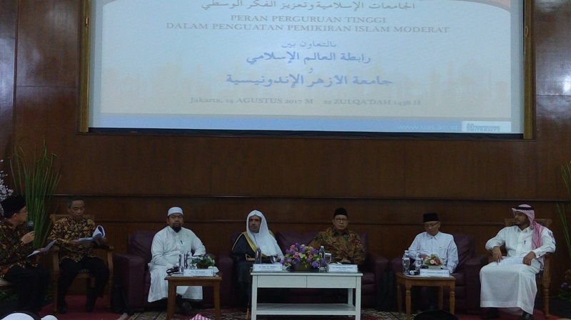 Menteri Agama (Menag) Lukmanul Hakim Saifudin (ketiga dari kir) saat seminar international di Universitas Al Azhar Indonesia, Jakarta, Senin (14/8). foto:MySharing;