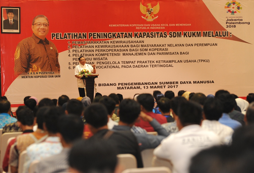 “Pemerintah mendukung dalam hal pelatihan dan pembiayaan. Dilatih tanpa pembiayaan akan sia-sia, begitu juga pembiayaan tanpa pelatihan takkan menghasilkan apa-apa. Selanjutnya, pemasaran dari produk yang dihasilkan juga harus dipikirkan”, ujar Puspoyoga pada acara Pelatihan Peningkatan Kapasitas SDM KUKM di Kota Mataram, Nusa Tenggara Barat (NTB), Senin (13/3).