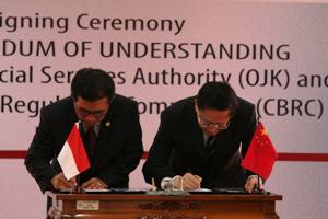 OJK dan China Banking Regulatory Commission (CBRC) bekerjasama dalam kegiatan pertukaran informasi dan peningkatan kapasitas pengawasan.