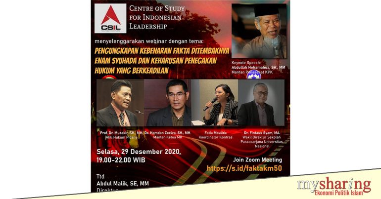“Enam anggota (FPI) ini ditembak mati disebabkan karena melakukan kejahatan apa?,” tanya Mudzakir dalam Webinar yang digelar Centre of Study for Indonesian Leadership (CSIL), Selasa malam (29/12/2020).