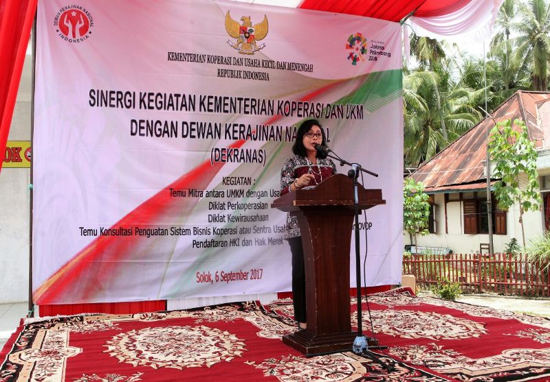 Demikian disampaikan Bintang Puspayoga Ketua bidang Manajemen Usaha Dekranas, saat membacakan sambutan Ketua Umum Dekranas – Mufidah Jusuf Kalla, yang sekaligus membuka acara Sinergitas Kementerian Koperasi dan UKM dengan Dekranas, yang berlangsung di Nagari Panyakalan, Kabupaten Solok, Rabu (6/9).
