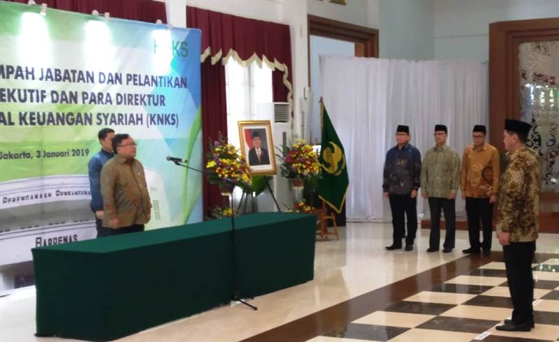 Menteri PPN/Kepala Bappenas – Bambang Brodjonegoro yang juga Sekretaris Dewan Pengarah Komite Nasional Keuangan Syariah (KNKS) dalam pelantikan Direktur KNKS...