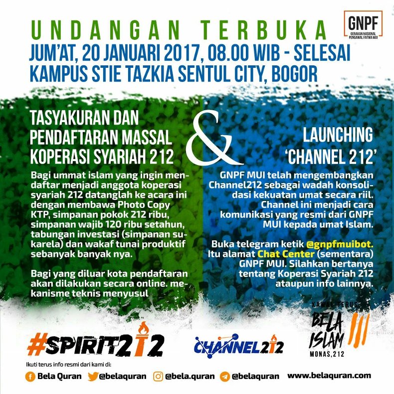 Pendaftaran massal (offline) dibuka besok di Bogor, cukup bawa uang minimal Rp332.000. Setelah lancar meluncurkan Koperasi Syariah 212 dua minggu...